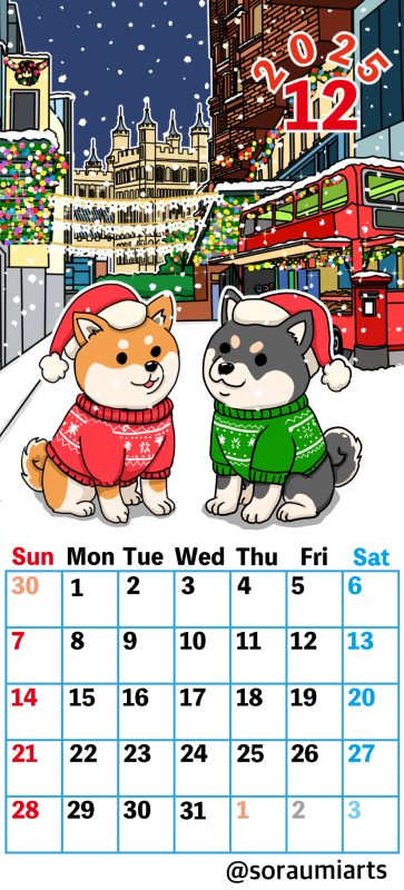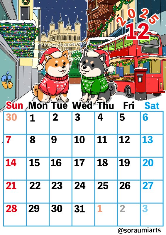 2025年12月のそらうみカレンダーを無料配布していますので、使ってもらえると嬉しいです。