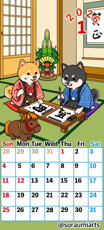 【無料配布】2026年1月そらうみカレンダー カレンダー 2025.12.29 スポンサーリンク 2026年1月のそらうみカレンダーを無料配布していますので、使ってもらえると嬉しいです。 目次 イラスト「新年の書き初め」2026年1月のそらうみカレンダースマホロック画面用印刷用(A4、A5) イラスト「新年の書き初め」 そらうみは新年の書き初めをしてるよ。 2026年1月のそらうみカレンダー スマホロック画面用 ロック画面にするとこんな感じ 印刷用(A4、A5) イラスト、漫画へ戻る