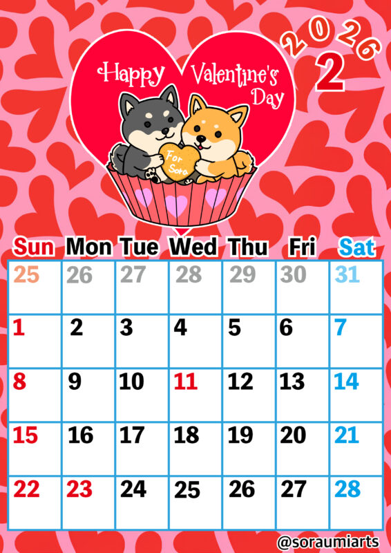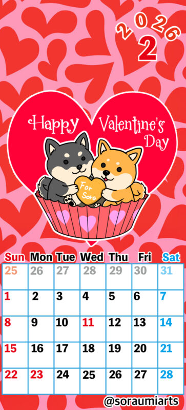 【無料配布】2026年2月そらうみカレンダー カレンダー 2026.01.28 スポンサーリンク 2026年2月のそらうみカレンダーを無料配布していますので、使ってもらえると嬉しいです。 目次 イラスト「ハッピー★バレンタインデー」2026年2月のそらうみカレンダースマホロック画面用印刷用(A4、A5) イラスト「ハッピー★バレンタインデー」 わんこはチョコレート食べれないから犬用クッキーね。 2026年2月のそらうみカレンダー スマホロック画面用 ロック画面にするとこんな感じ 印刷用(A4、A5) イラスト、漫画へ戻る