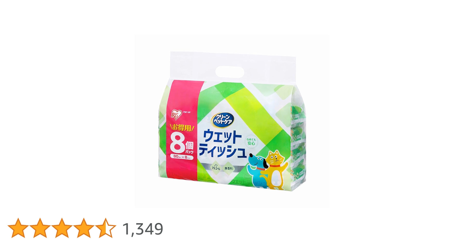 ペット用 ウェットティッシュ 除菌 ノンアルコール 消臭剤配合 80枚×8袋 1,077円