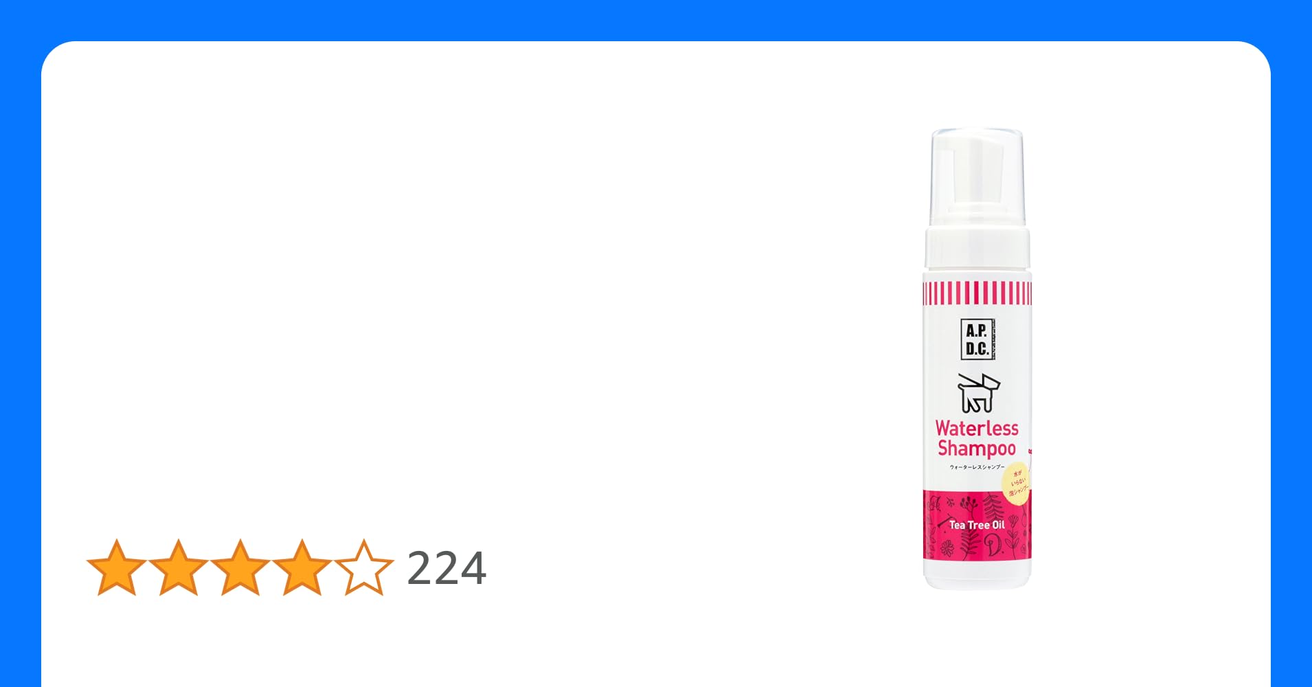 A.P.D.C. ウォータレスシャンプー 200ml 犬用 ドライ 泡シャンプー ティーツリーの香り