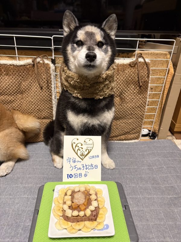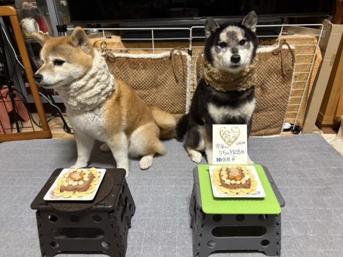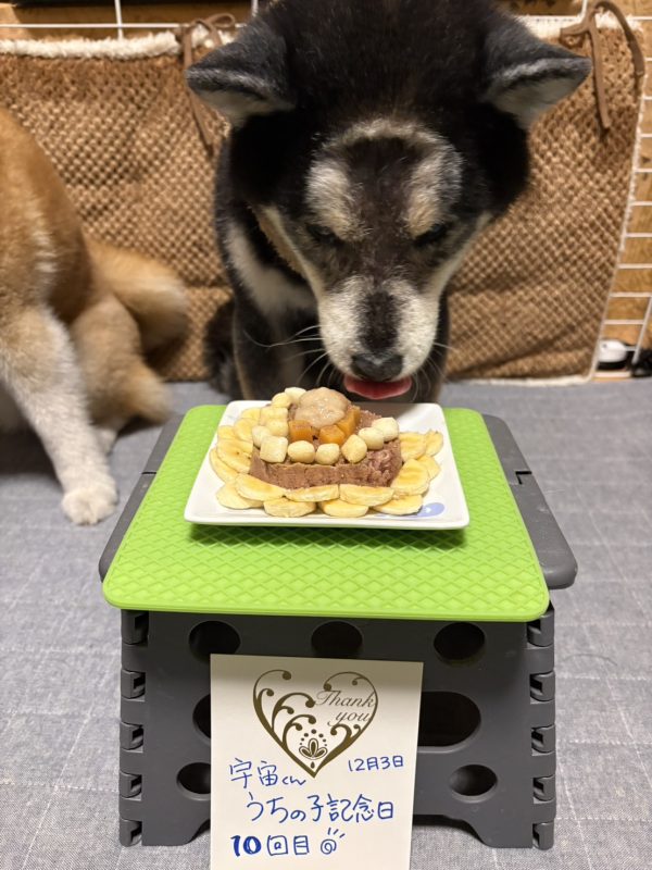 お祝いにわんこ用のケーキを買いに行ったけど、小麦粉とか入ってたからやめてママがスペシャルディナーを作りました。