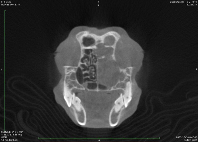 宇宙がくしゃみをした際に鼻水に血が混じっていることに気づき、動物病院で診察を受けました。
